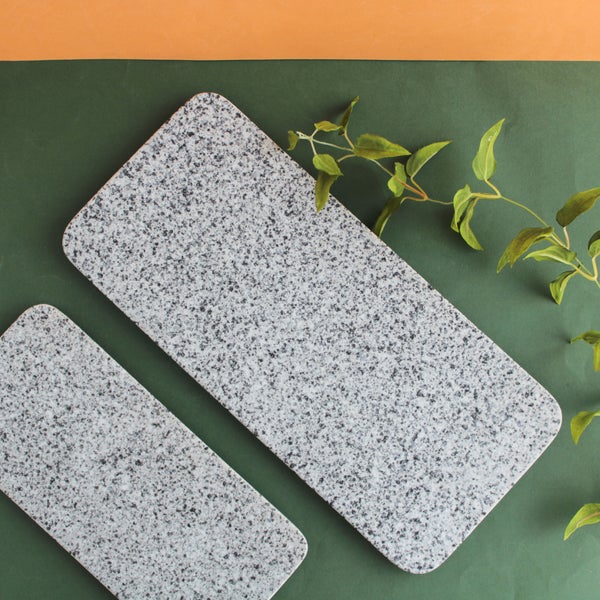 Introducing a premium granite stone serving platter—perfect for elevating the presentation of any dish. Crafted with a contemporary rectangular shape and gently rounded edges, the platter showcases a sophisticated speckled grey surface designed to complement any table setting. Durable and naturally resistant to scratches and stains, this platter is ideal for serving cheeses, desserts, sushi, and hors d'oeuvres at stylish gatherings or daily meals. Its neutral tone and elegant simplicity ensure it blends seamlessly with modern decor, bringing out the vibrant appeal of your culinary creations.